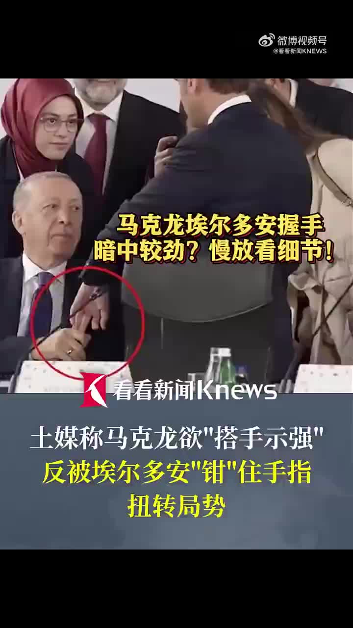 马克龙埃尔多安握手较劲,慢放看细节!5月16日土耳其总统埃尔多安与法国总统马克龙在峰会上“握手较量”的一幕引发热议。画面显示,马克龙在走近埃尔多安时用力将手搭在对方手上,被一些土耳其媒体解读为试图在姿态上展现主导地位。埃尔多安随后反手紧紧握住马克龙手指,双方在短暂的“较劲”中僵持数秒,最终马克龙略显吃力地抽回了手指。土耳其媒体注意到埃尔多安始终未起身,称他回应马克龙的举动扭转了局势,法国方面暂未对这次“交锋”作出回应。 (via 看看新闻KNEWS)