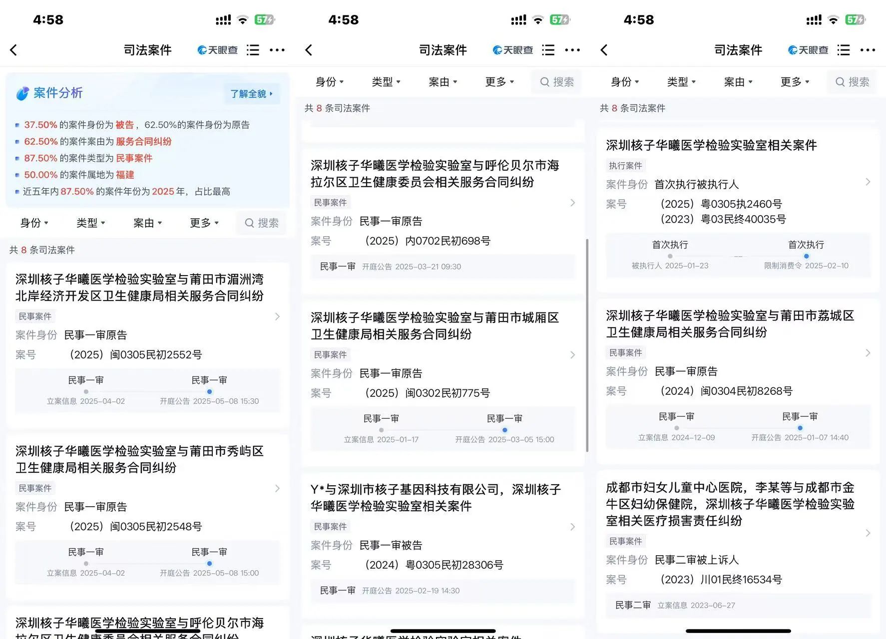 自去年开始,张核子麾下深圳核子华曦医学检验实验室以“服务合同纠纷”为由,剑指莆田市、呼伦贝尔市海拉尔区等多地卫生健康管理局,追讨检测款。