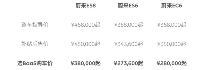 8月20日,蔚来“电池租用服务(BaaS,Battery as a Service)”正式发布,采用BaaS购买蔚来,车价减7万,每月电池租用服务费980元起。Baas服务即车电分离、电池租用、可充可换可升级;购车时不需购买电池包,机动车销售发票价格中不含电池包价格,用户的金融贷款首付和每月还款额也以去掉电池包的价格计算。用户可根据自身实际使用需求,选择租用不同容量的电池包,按月支付电池租用服务费用。