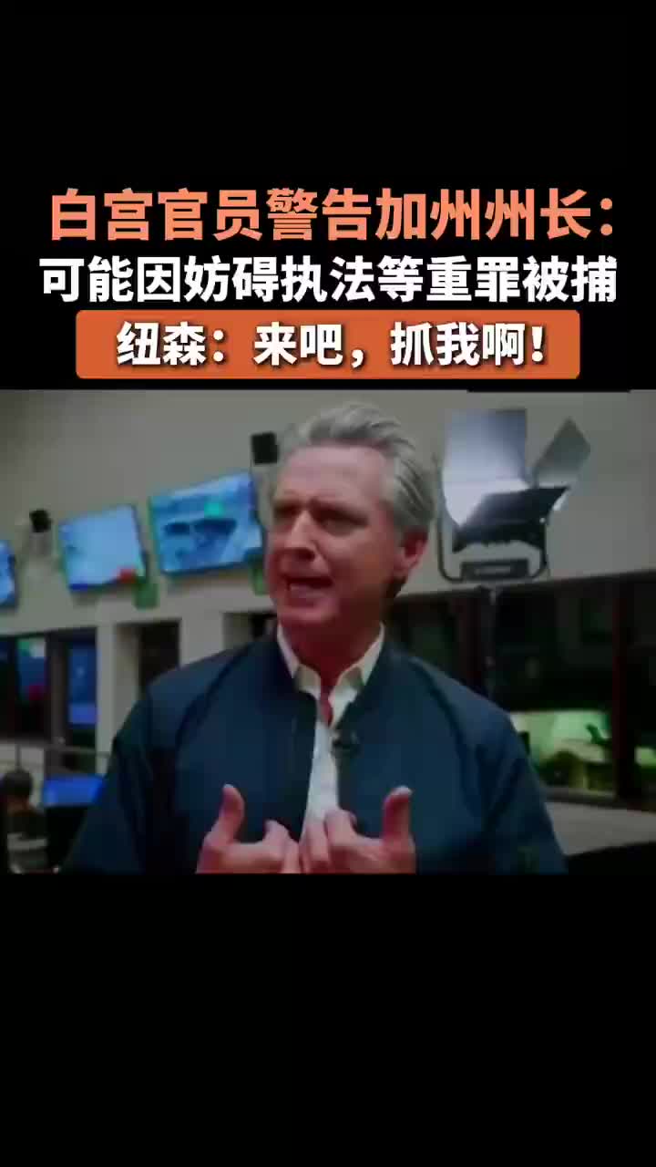 加州州长喊话白宫来抓我啊。当地时间6月8日,美国白宫边境事务主管汤姆·霍曼警告称,若加州州长纽森等地方官员继续反对联邦政府在洛杉矶周边的移民执法行动,可能因“窝藏非法移民”“妨碍执法”等重罪面临逮捕。当天晚些时候,纽森在接受采访时喊话霍曼,“来吧,逮捕我啊”。 (via 环球网)