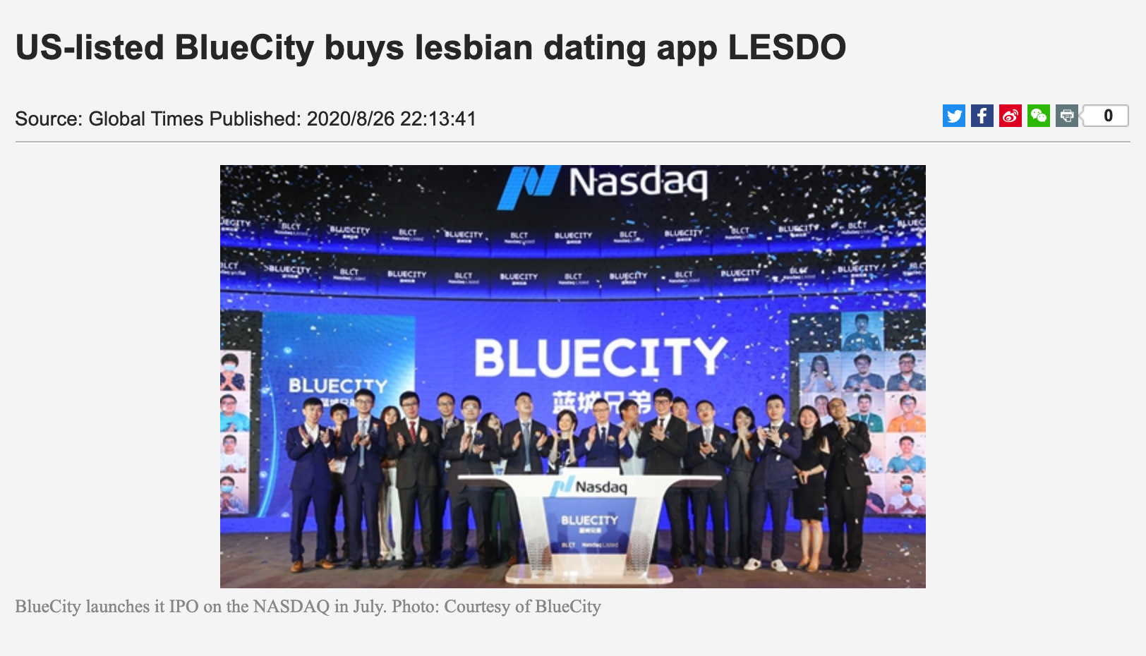 Blued母公司蓝城兄弟收购女同交友应用乐Do。周三美股盘前,中国最大男同性恋交友应用Blued母公司蓝城兄弟宣布,已收购中国女同性恋交友应用乐Do。据报道,这是中国LGBT市场的第一笔收购交易。蓝城兄弟表示,“我们相信,我们将充分利用我们的财务和技术资源以及运营经验,完善和丰富我们的服务产品,以扩大我们的潜在市场,并推动进一步的货币化机会。”