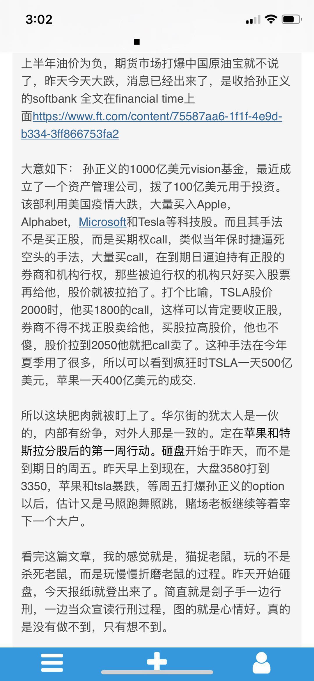 这几天美股大盘全线杀跌,据说这是华尔街针对软银巨额看涨期权的定点爆破!