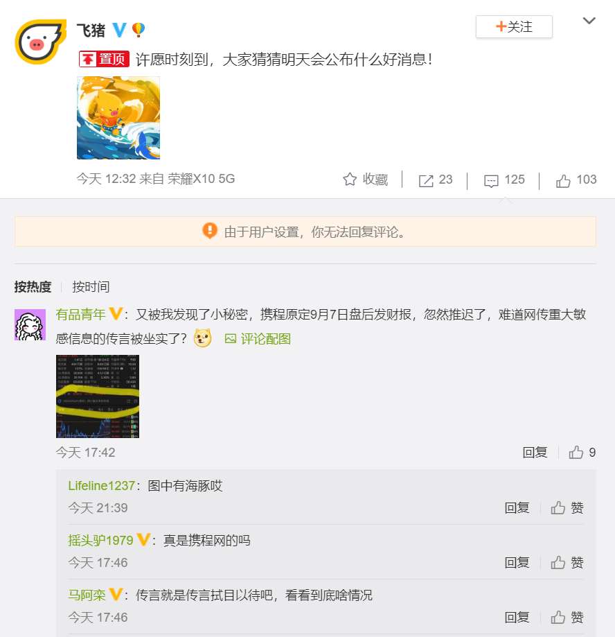 飞猪称9月8日有新消息宣布,疑似与携程有关。