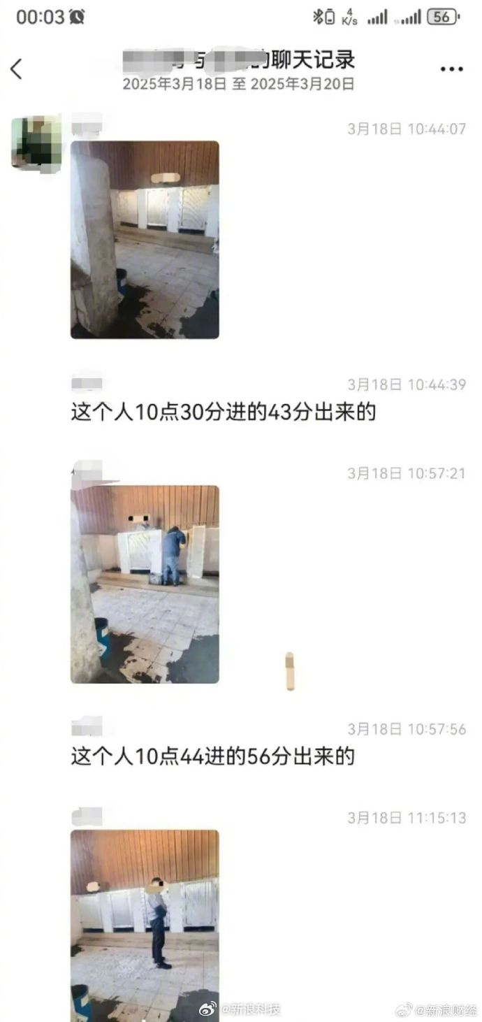 近日,江苏南京一公司被曝拍摄员工如厕照片并记录时间,规定如厕超15分钟罚款450元,引发网友关注。据网友发布的一段聊天记录显示,江苏南京一公司有人拍摄多位员工如厕的照片,并分别记录他们进出厕所的时间。
