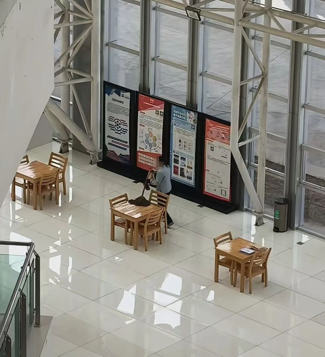 兰州一图书馆保洁员用拖把拖地又拖桌子,图书馆:保洁员属于物业公司,已批评并惩戒。