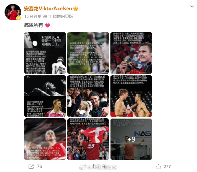 在这里,我要衷心感谢所有的医生、专家以及我的教练团队,感谢你们一直以来为寻找转机所付出的努力。从我第一次拿起球拍的那天起,我的梦想就是成为世界第一。为了这个目标,我每一天、每一次训练、每一场比赛都倾尽所有。对我而言,羽毛球从来都不只是一份职业,它就是我的生命。为了这项运动,我已竭尽所能,无愧于心。”