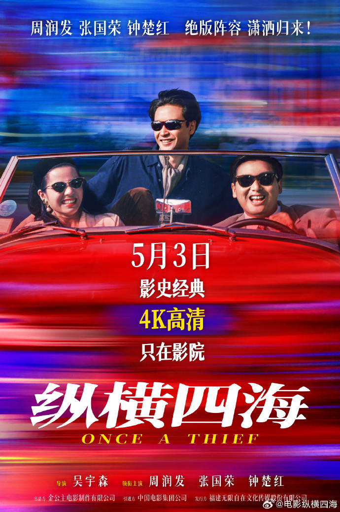 时隔35年,电影《纵横四海》内地首次公映,定档5月3日,周润发、张国荣、钟楚红绝版同框。