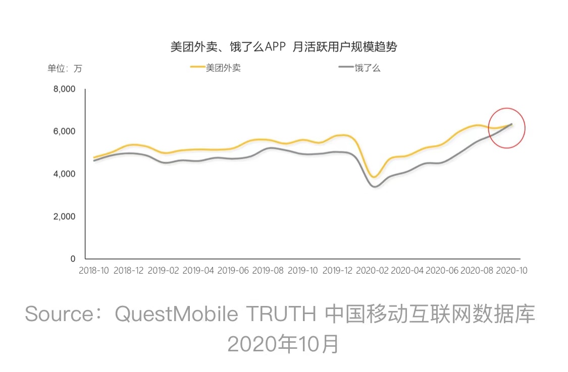 QuestMobile:饿了么月活(MAU)首次超过美团外卖。根据QuestMobile的最新数据显示,饿了么在10月份的MAU(月活跃用户)已经超越美团外卖,这是饿了么近两年以来月活用户首次在App端高于美团外卖。
