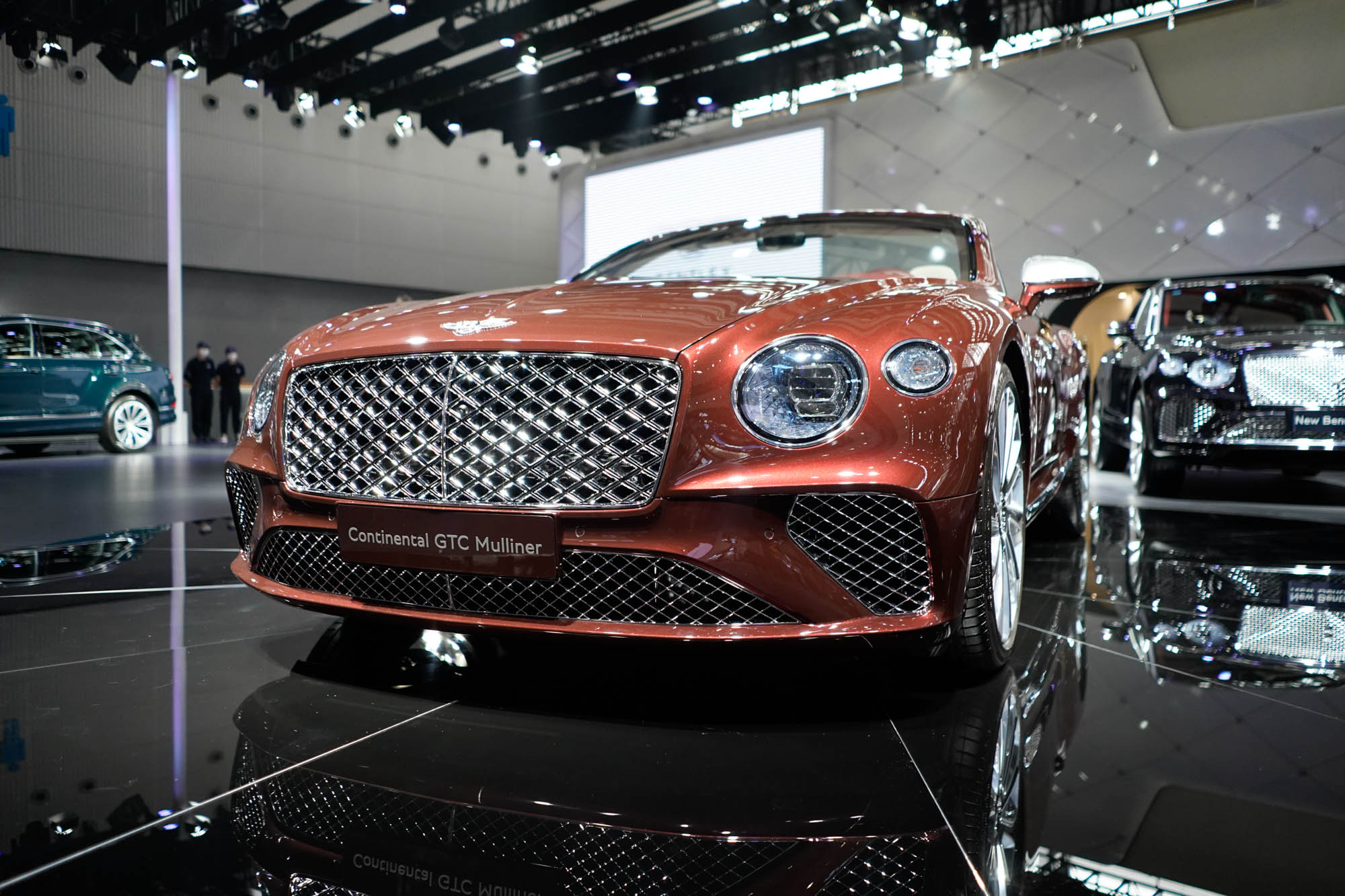 2020广州车展,宾利带来由个性化定制部门Mulliner打造的欧陆GTC Mulliner。和普通版欧陆GT相比,Mulliner版的外观特点包括了专属的“双菱形”格栅及侧面装饰,22英寸漆面抛光轮毂中央的“B”字车标,可在车轮旋转时保持垂直。这辆GTC Mulliner展车的后甲板双菱形皮革装饰,每个图案包含了712个针脚,整个车厢内缝线多达40万针。如果折算下来,每个菱形格的价值大约在700元,当然了人家不单卖。