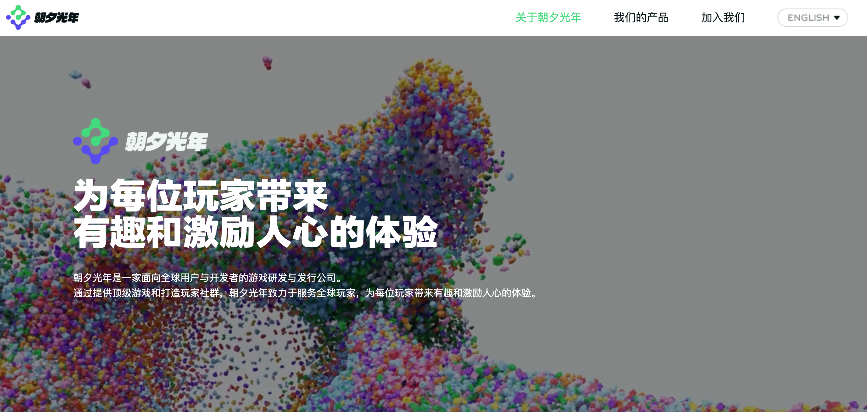 字节跳动游戏官网正式上线,品牌名为 “朝夕光年”。