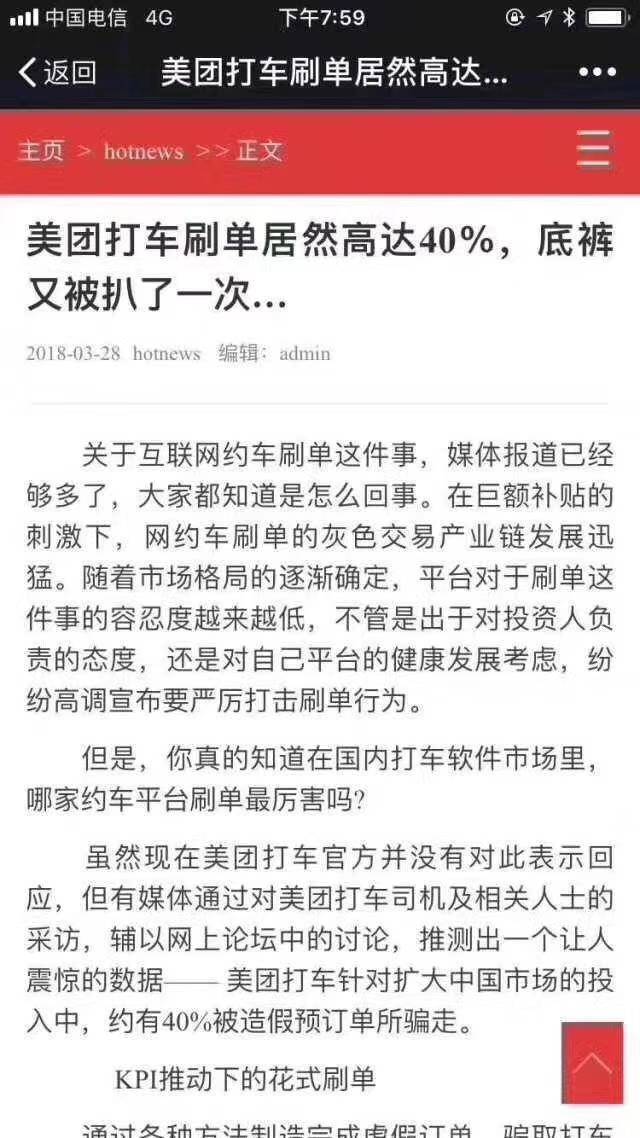 网约车40%刷单文章,是自媒体跟风蹭热点,还是滴滴疏忽,又或者是美团演戏给滴滴设套,貌似都有可能,谁知道呢……