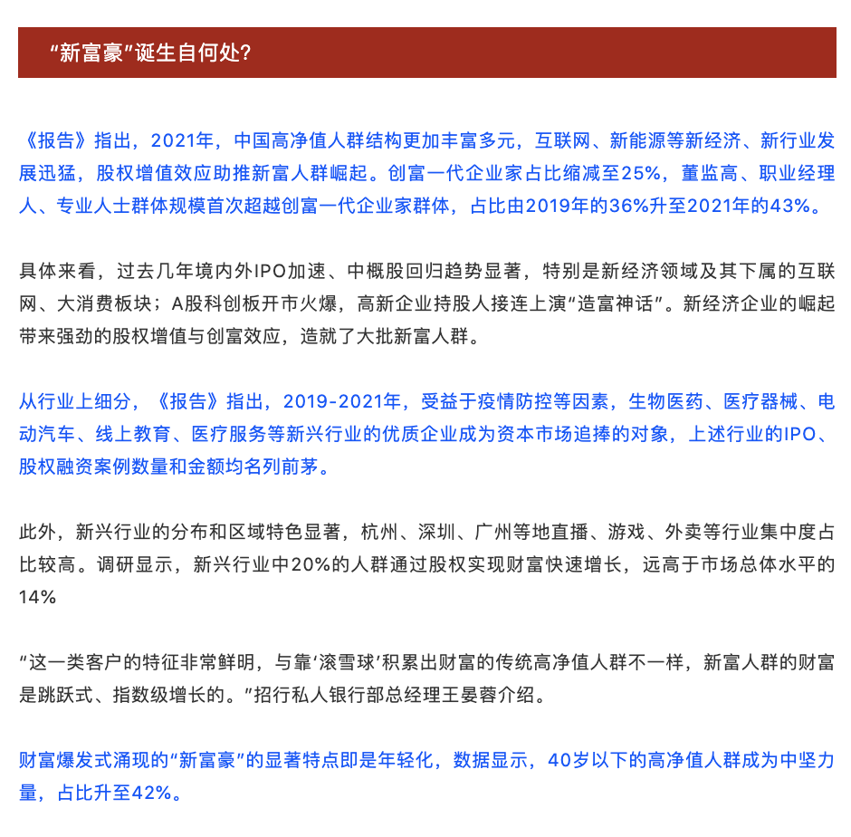 “富豪”正在变年轻!IPO造就大批新富人群,42%高净值人群在40岁以下。