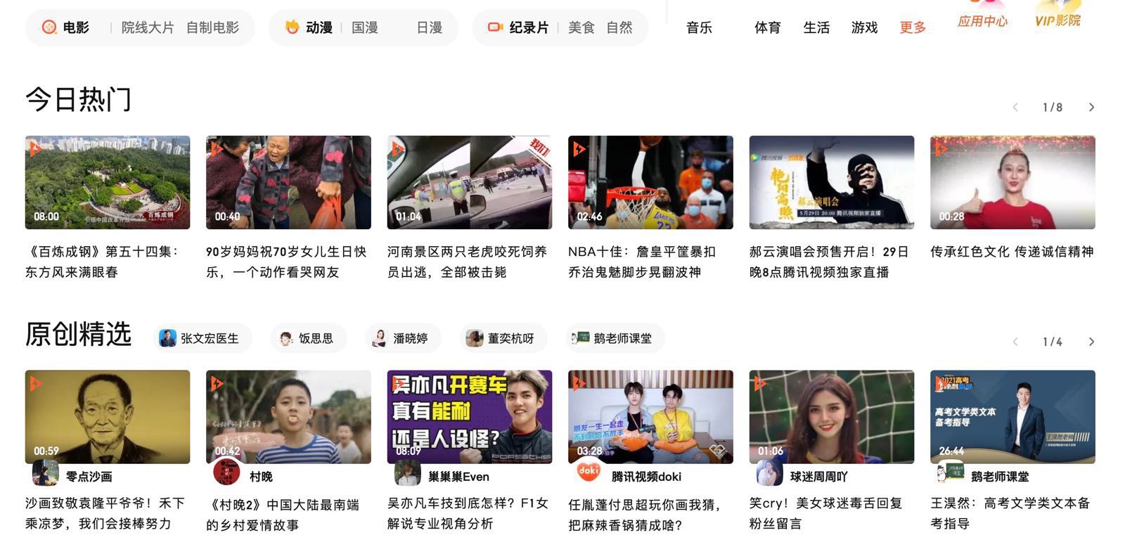 发现了一件很有意思的事,腾讯视频最近对首页内容的权重进行了大幅调整,影视剧都被放在了第二屏,这是要转型Youtube的节奏。