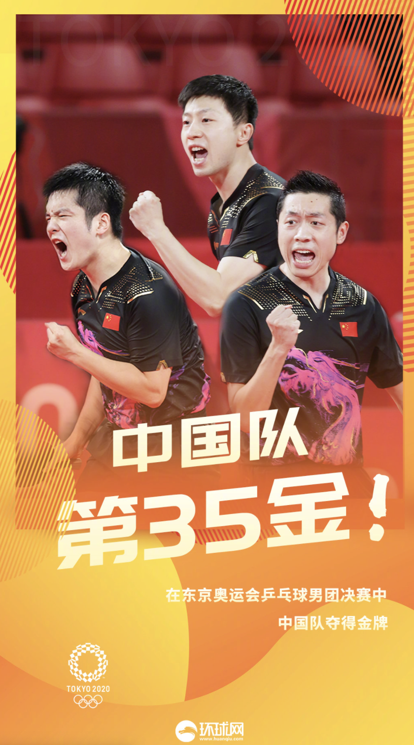第35金!中国队获乒乓球男团金牌。