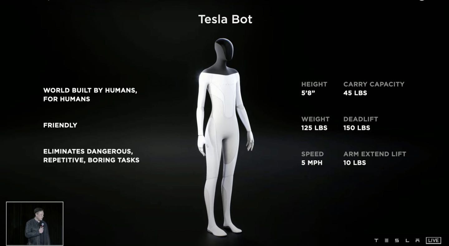 机器人生活助理来了?马斯克要推出人形机器人特斯拉机器人Tesla Bot原型,这里提一句原型机是不能直接用于市场的,研发还需要时间。