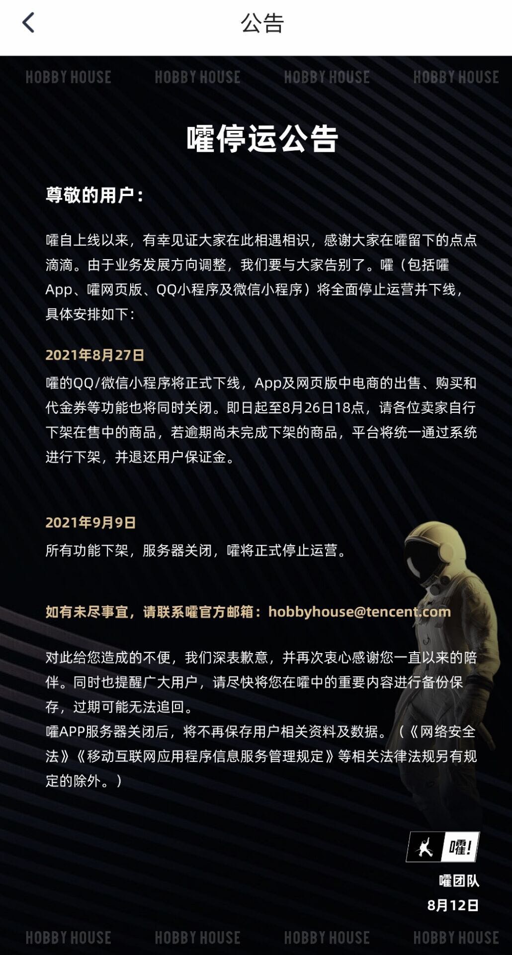 最近,腾讯旗下潮鞋社区产品“嚯”发布公告称,由于业务发展方向调整,“嚯”将全面停止运营并下线。