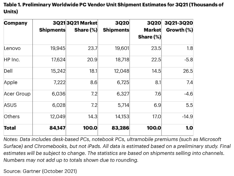 2021年第三季度全球PC增长再次放缓。
