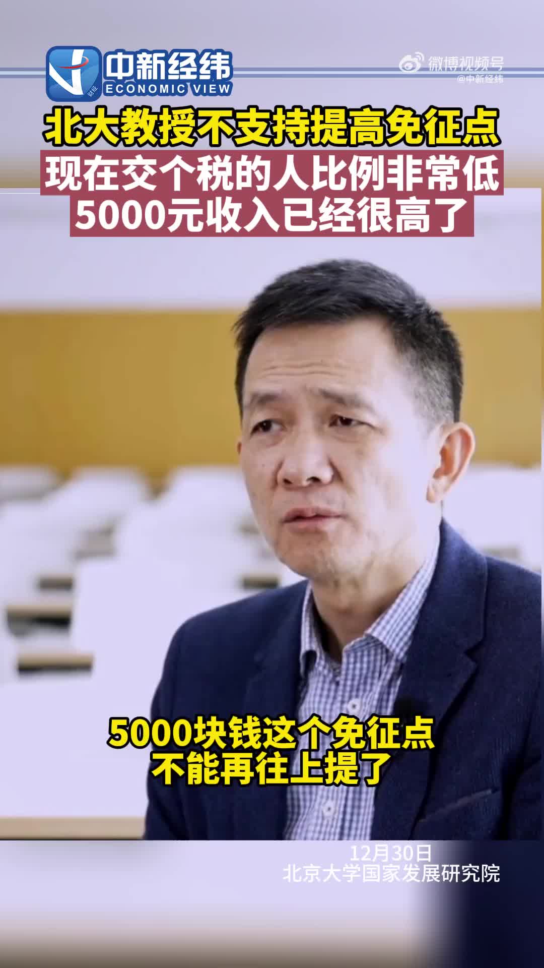 北大教授不支持提高个税起征点: 现在交个税的人比例非常低,5000元收入很高了。近日,北大国发院院长姚洋在节目中表示,不支持再提高个税免征点,5000块钱收入已经很高了,我们现在交个人所得税的人,占到全部拿工资的人大概就14%左右,是非常低的比例。(via 中新经纬)