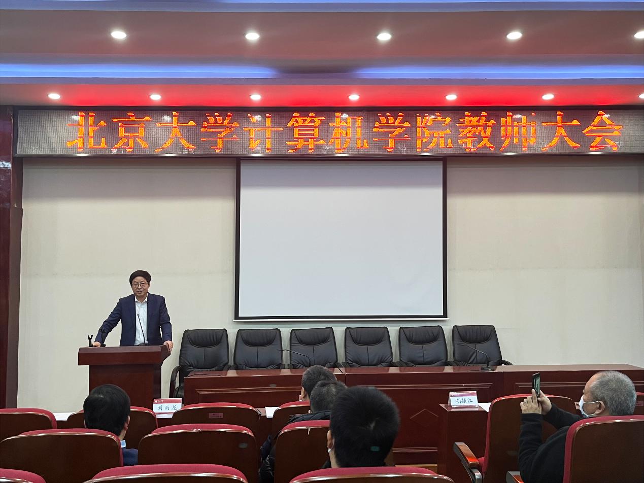 据澎湃新闻,2022年1月10日,北京大学计算机学院在理科2号楼召开教师大会,北京大学党委常委、副校长张平文院士,党委组织部副部长刘雨龙以及计算机学院部分教职工参加大会。刘雨龙宣读了《关于成立中共北京大学计算机学院委员会的通知》,宣布了胡振江、熊校良和魏朋同志的任职决定,并对相关选拔任命工作进行了说明。计算机学院院长胡振江、党委书记熊校良、副书记魏朋依次进行任职发言,张平文副校长最后做了总结讲话。