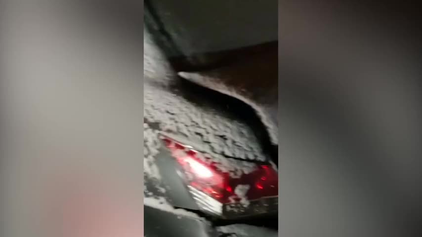 网传视频显示,被白雪覆盖的高速公路道路上发生了多起交通事故,其中一段视频中,多辆汽车撞在一起受损严重。(via 极目视频)