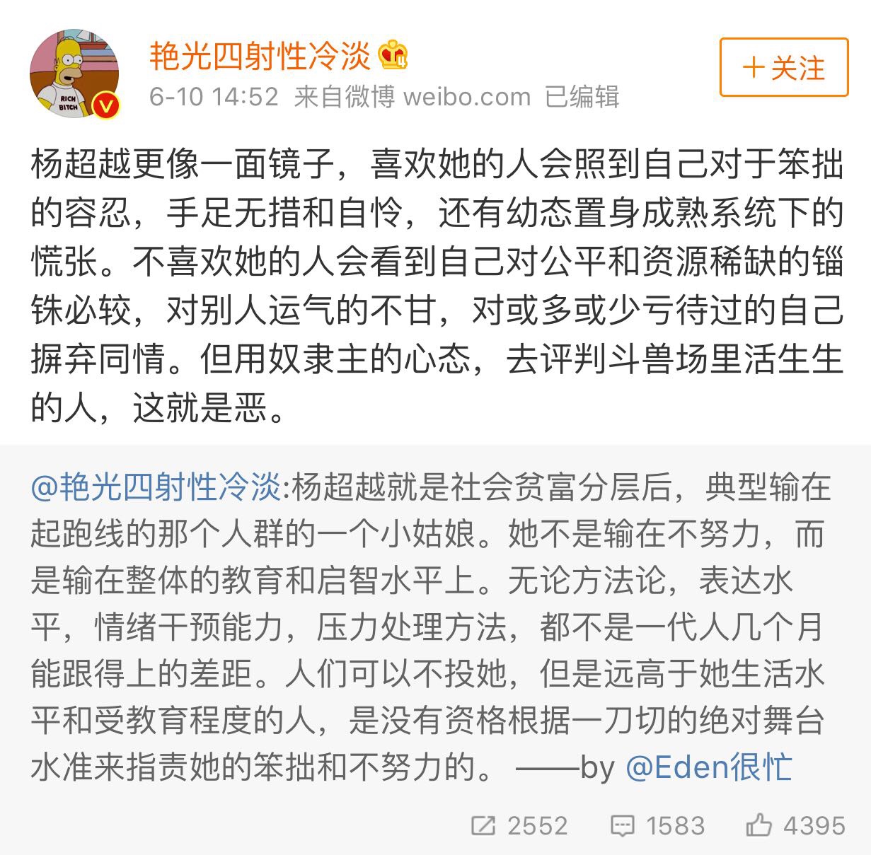关于杨超越,看到的最合适的解读。或许,关于这个夏天跌宕起伏的经历,她的字典里还没存储够理解透彻的词汇。