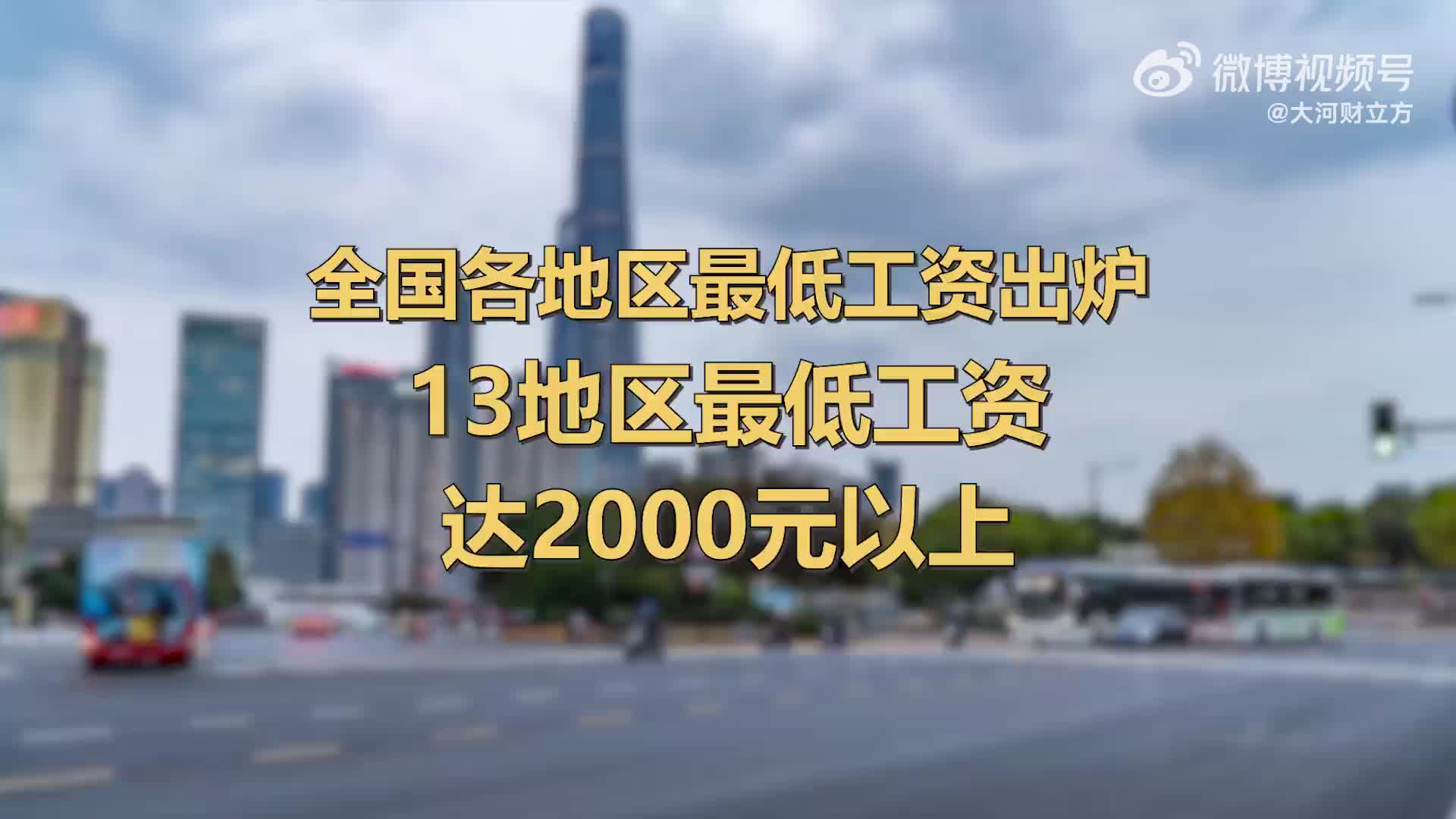 全国各地区最低工资出炉 ,12省份超2000元,上海最高。
