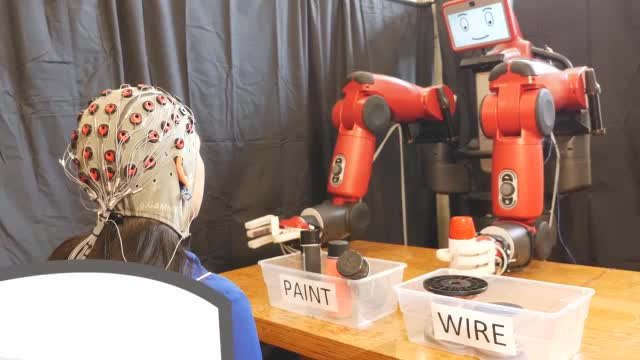 MIT CSAIL的研究团队开发了一个可用思维和手势控制的机器人Baxter,简直是懒人福音了。通过连接在控制者头皮和前臂的电极,就可以实时读取控制者的脑电信号和肌电信号,如果控制者对机器人行为表现出不满意,它还会及时发现并对自己进行纠正。