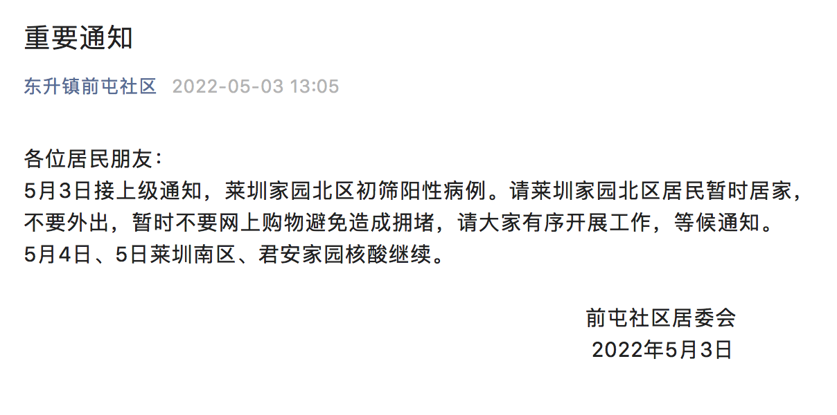 据北京日报,北京海淀区莱圳家园北区发现初筛阳性病例,居民暂时居家不外出。