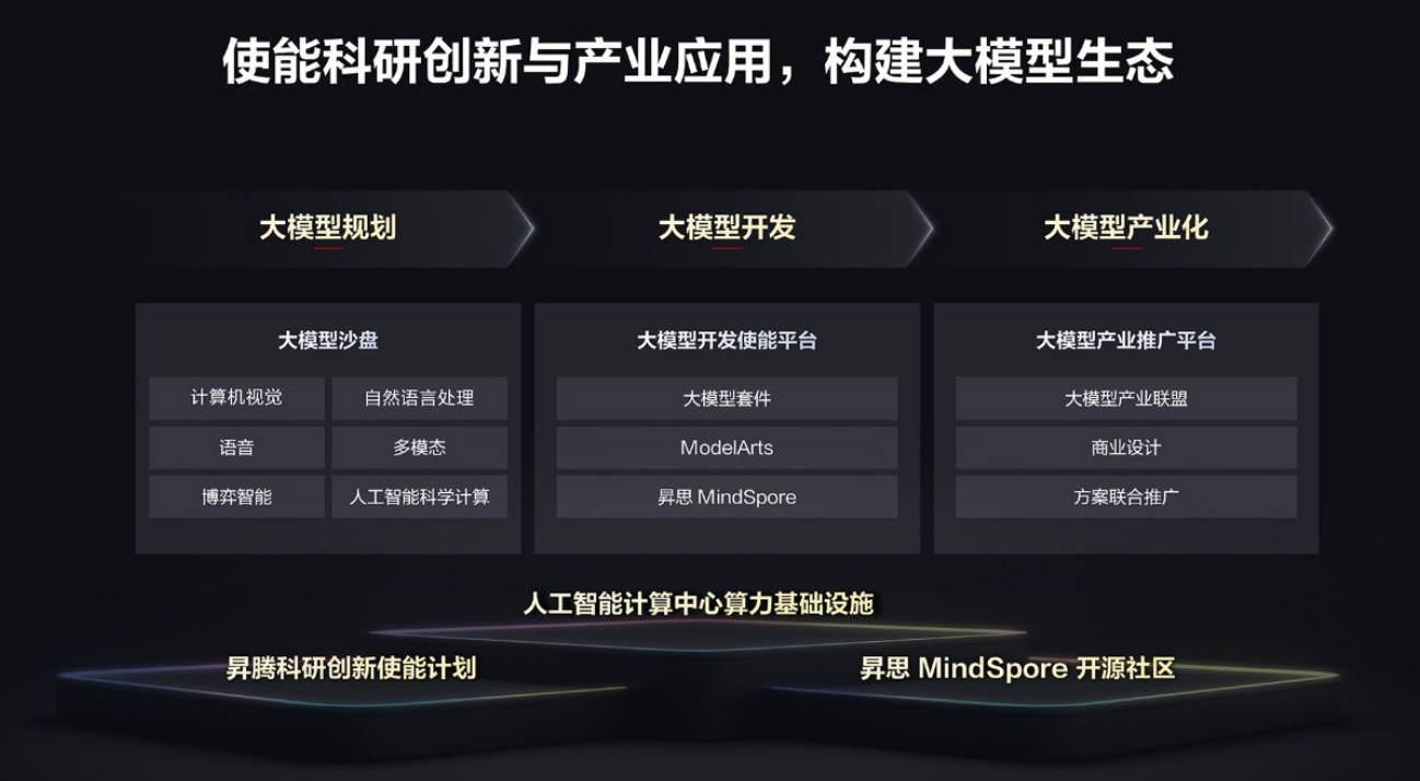 简单来说,华为就是鼓励和召集更多开发者,用通过华为云使用AI基础技术能力和开发套件,来做更多大模型训练;