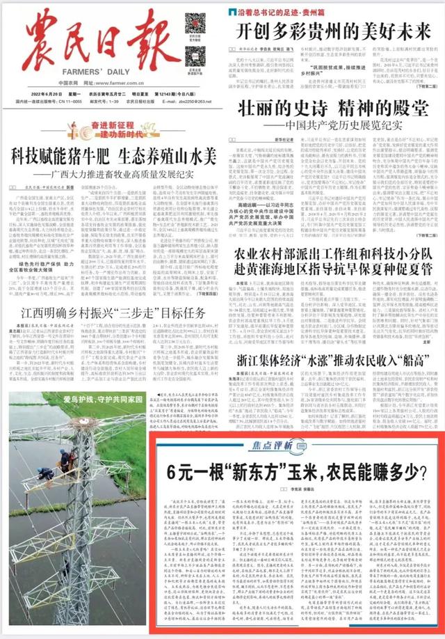 农民日报头版:6元一根“新东方”玉米,农民能赚多少?