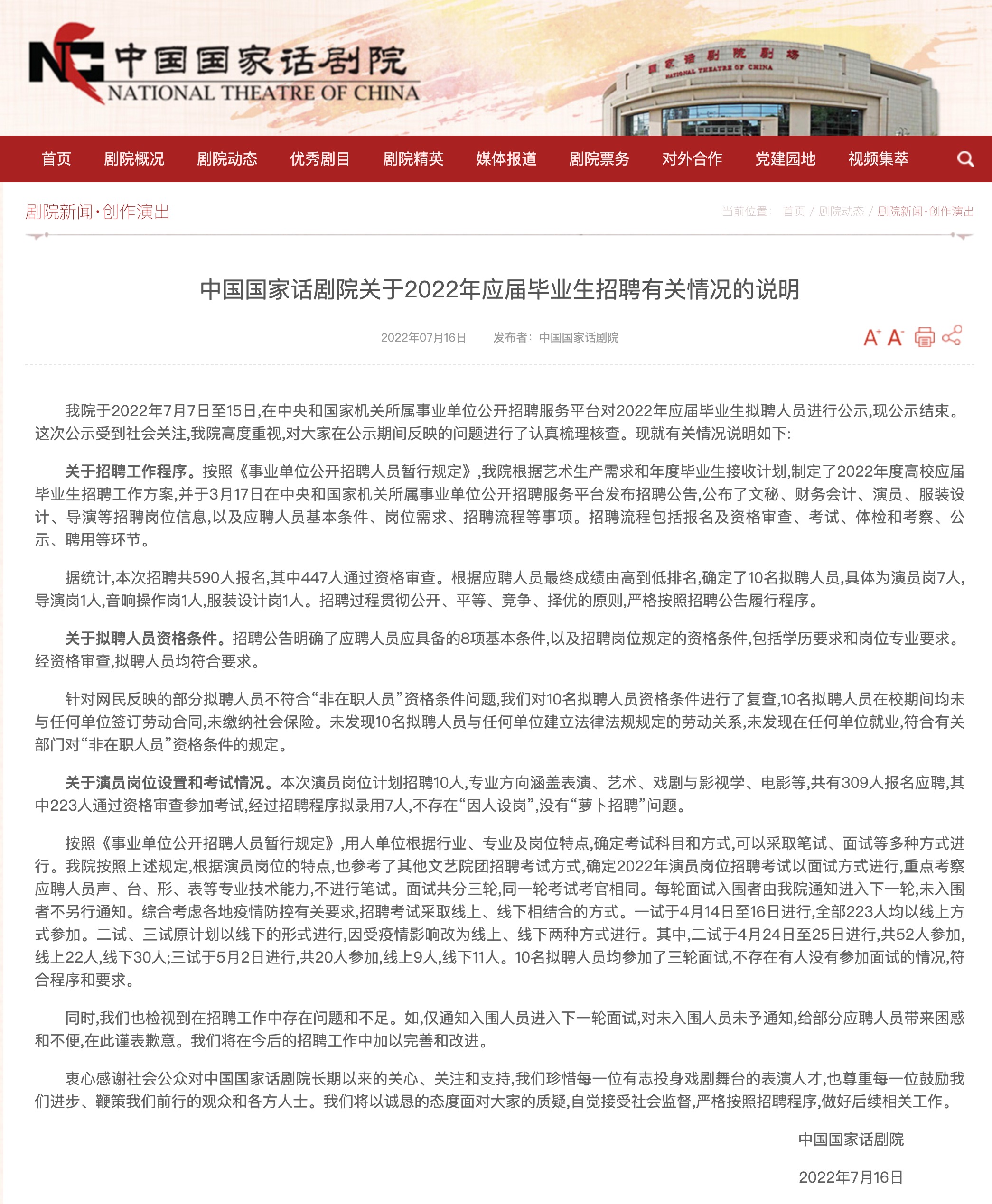 国家话剧院回应易烊千玺等考编:不存在“因人设岗”,没有“萝卜招聘”问题。