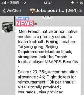 昨天我在一个“北京老外找工作微信群”里看到了这么个招聘启事: