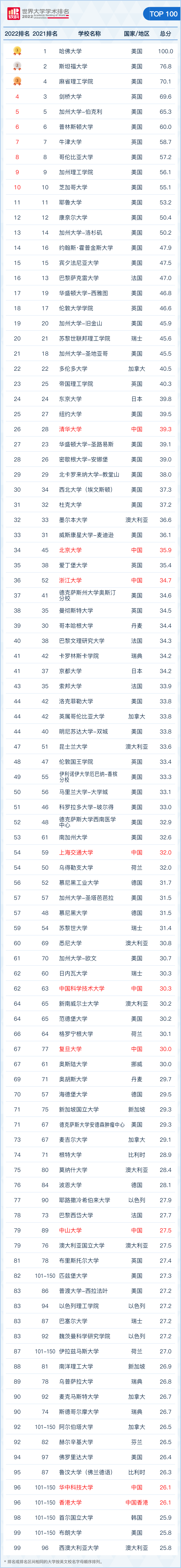 中国共83校进入世界五百强,9校跻身世界大学学术排名百强,数量仅次于美国。据上观新闻,8月15日中午,全球1000所研究型大学进入刚刚披露的“2022软科世界大学学术排名”。不含我国港澳台地区,中国内地共有163所大学上榜,上榜学校数量较上次排名增加6所,其中71所高校入围世界500强。这五百强中,又有8所高校位列世界百强,比上一次排名增加1所,在数量上仅次于美国,与英国并列全球第二。