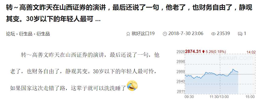 尽管养老金被别人花光了,房贷车贷背在头上不敢轻易乱动,但终究我们在上司的骂声中忍忍总还是能保证房贷车贷孩子教育的接续,祈祷别生大病过着小心翼翼的日子。只是,经济诡谲的走向,无法被自己控制的未来,想起来还是有些颤颤巍巍。如果我们成了时代大潮中被牺牲的一代,那未免有些悲凉。