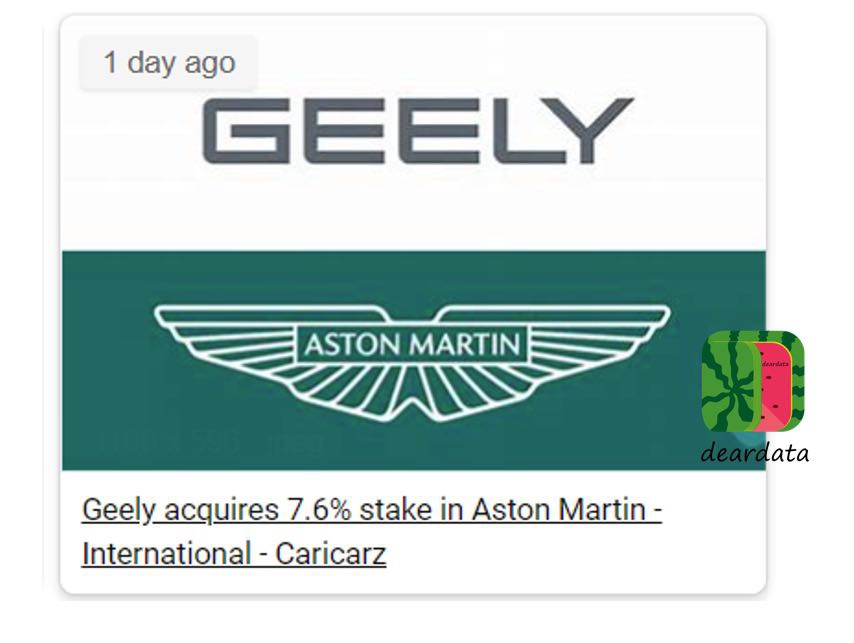 吉利收购了阿斯顿马丁7.6%的股份。