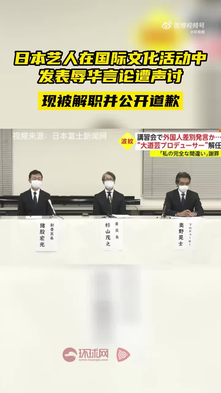 日本艺人在国际文化活动中发表辱华言论遭声讨,现被解职并公开道歉。