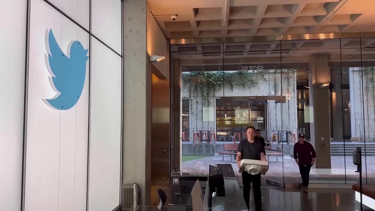 据界面新闻综合路透社和彭博10月26日消息,特斯拉CEO马斯克当地时间周三现身推特旧金山总部,并在推特上发布了一段他“抱着洗手池进入大楼”的视频片段,马斯克推特账户上公开的个人简介已经改为“Chief Twit”,暗示其将成为推特的最大所有者。本周五,他将直接对推特员工发表讲话。