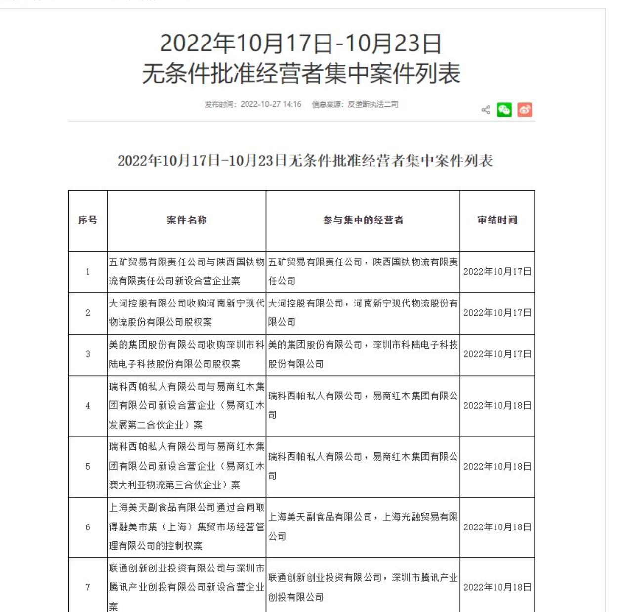 国家市场监管总局批准中国联通与腾讯设立混改新公司。据国家市场监管总局官网10月27日发布的《2022年10月17日-10月23日无条件批准经营者集中案件列表》显示,联通创新创业投资有限公司与深圳市腾讯产业创投有限公司新设合营企业案获无条件批准,审结时间为10月18日。11月2日下午,中国联通尾盘直拉涨停,封单超155万手。