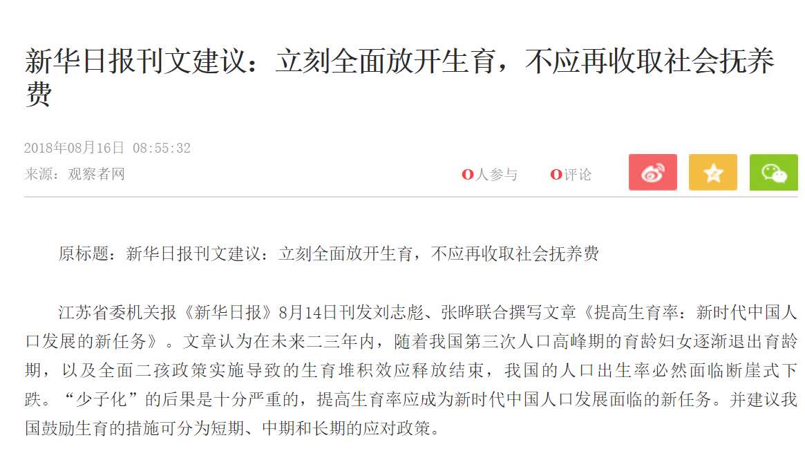 新华日报率先开口了直指计划生育,不过,结合河南某县上个月还在想着再次搜刮高额社会抚养费这件事,这两幅图放到一起颇有些诡异,它们至少说明: