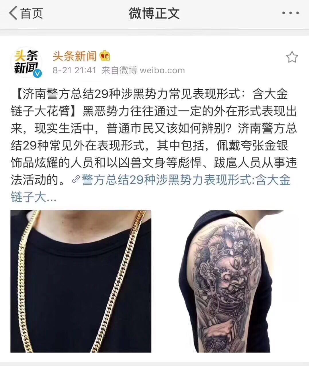 济南警方总结的29中涉黑势力常见表现形式,其中包括夸张的金银饰品和纹身😒你觉得这些形式合理吗?
