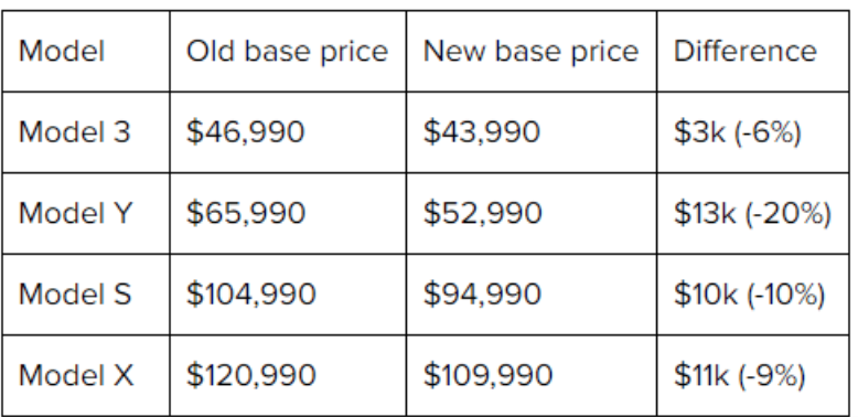 特斯拉在美国下调所有新车型售价,基础版Model Y降价20%。
