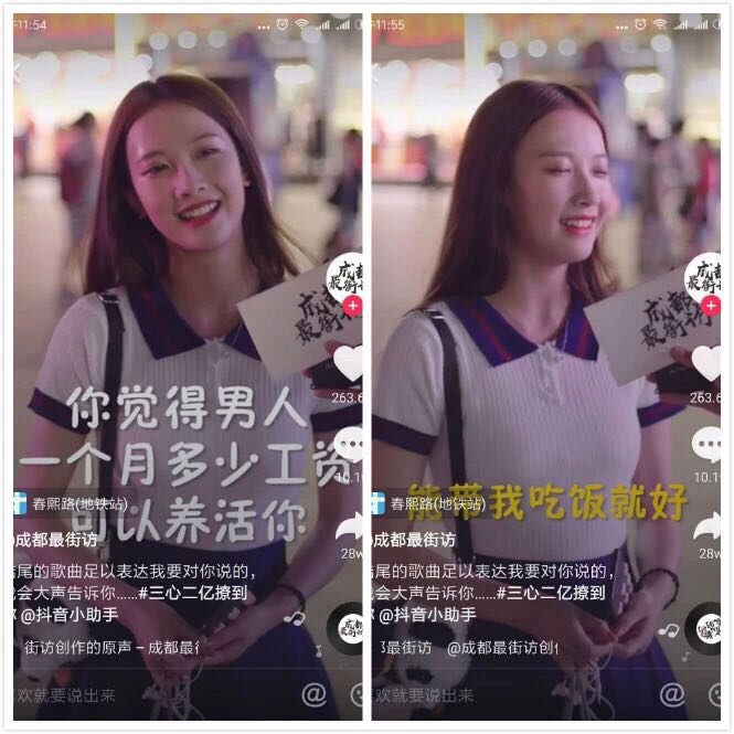 “娶妻当娶小甜甜”成为抖音政治正确,“男屌丝”们立刻切换成“非卿不娶”的深情模式,但同样在抖音上,他们对其他漂亮女孩充满恶意,在女孩们晒酒店或旅游的视频下面,留下各种不堪入目的评论。