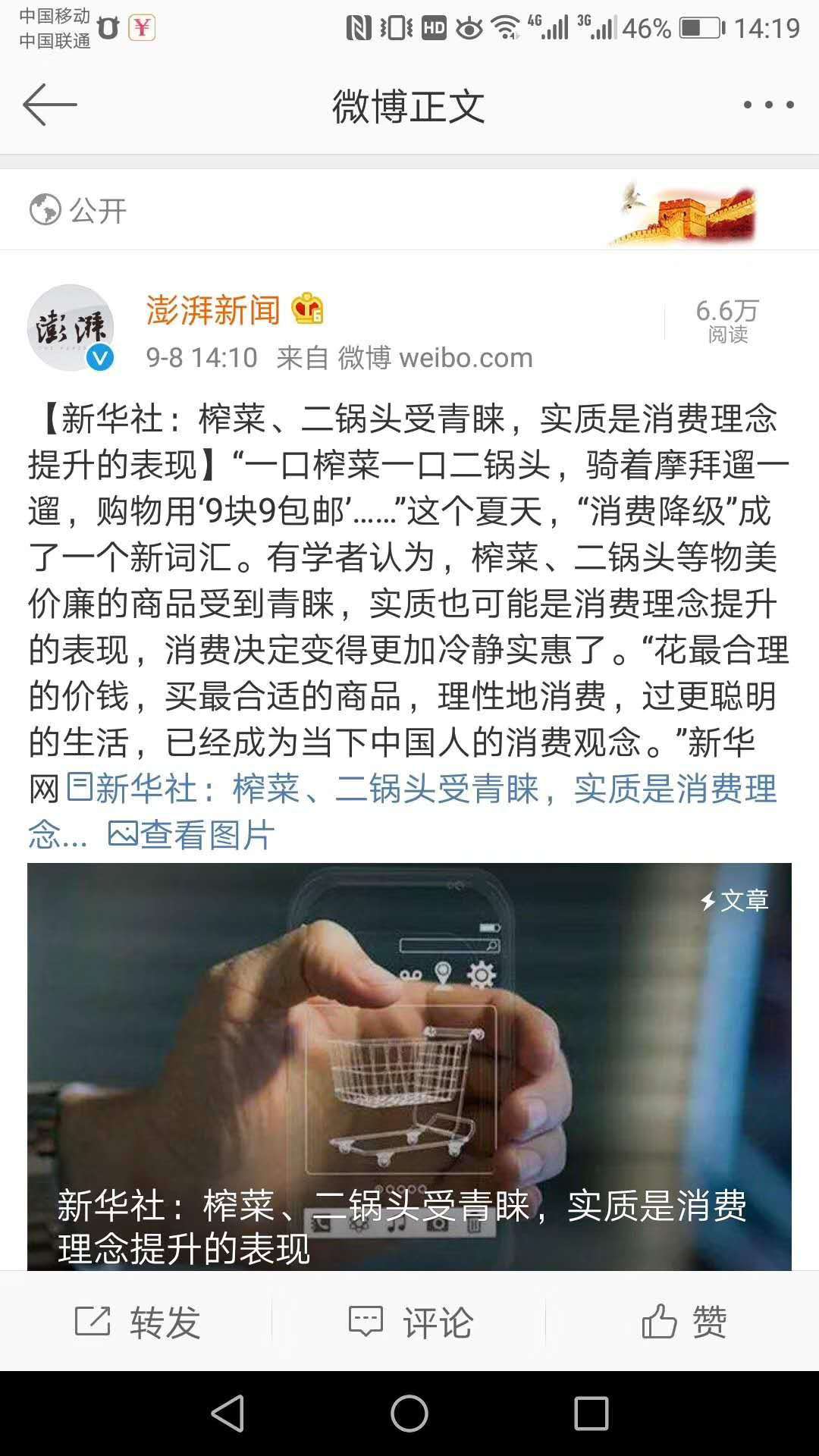 原来榨菜和二锅头销量增加,是消费升级,不是降级,厉害了,今日正能量
