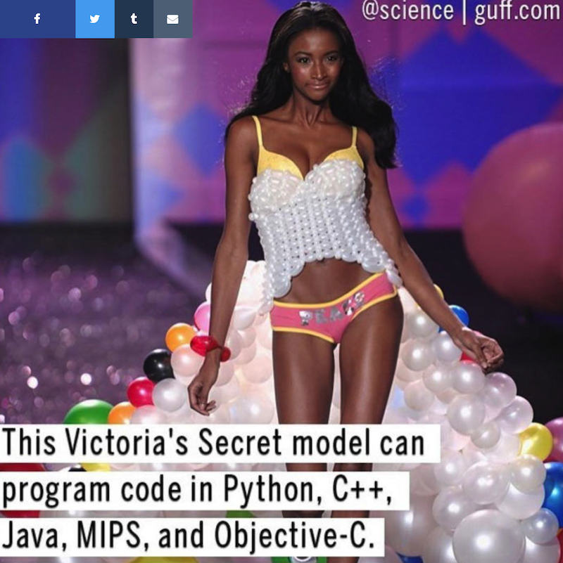 Lyndsey Scott 是维密秀的超模外,同时也是一名程序员,可以用五种语言编写代码:Python,C ++,Java,MIPS和Objective-C。还是 StackOverflow 的 iOS 顶级回答者。