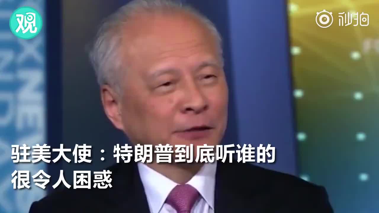 驻美大使崔天凯:特朗普到底听谁的,很令人困惑。福克斯新闻播出了对驻美大使崔天凯的采访。崔天凯表示,特朗普在贸易决策中到底听谁的,很令人困惑。他透露,其实很多其他国家的驻美大使都有同样疑惑:照理来说应该是总统做最终决定,“但他们也不知道最终决策者是谁”。(视频来源:观察者网)