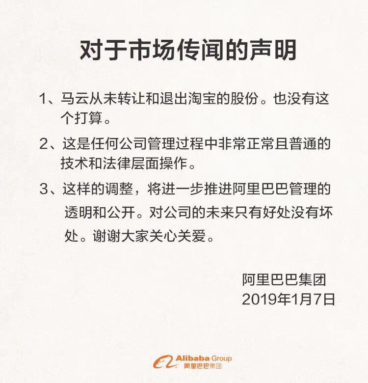 市场传闻了一天后,阿里的辟谣颇为精彩——不管什么调整,都对公司只有好处没有坏处……嗯,包括之前支付宝私有化时随便找个爱国的理由将投资人踢出去那次,也是吧?