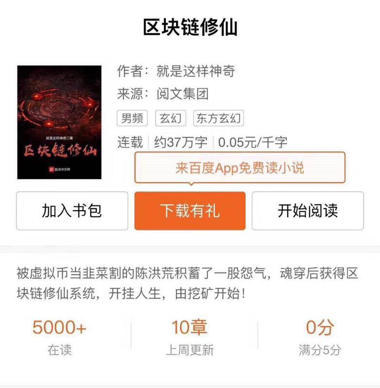 互联网文学+区块链=仙儿