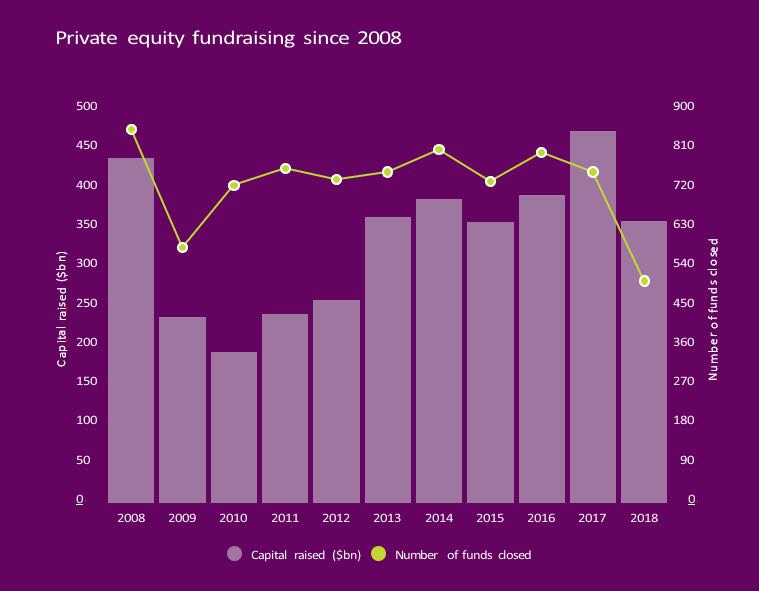 2018全球私募股权基金募资报告中几个有价值的数据* 全球募资额同比下降24%,VC成唯一上升基金类别* 新兴市场募资额破10年新低,二手份额基金未来可观* 2018年募资规模最大的10只基金中,高瓴资本106亿美金的新基金只是第4名