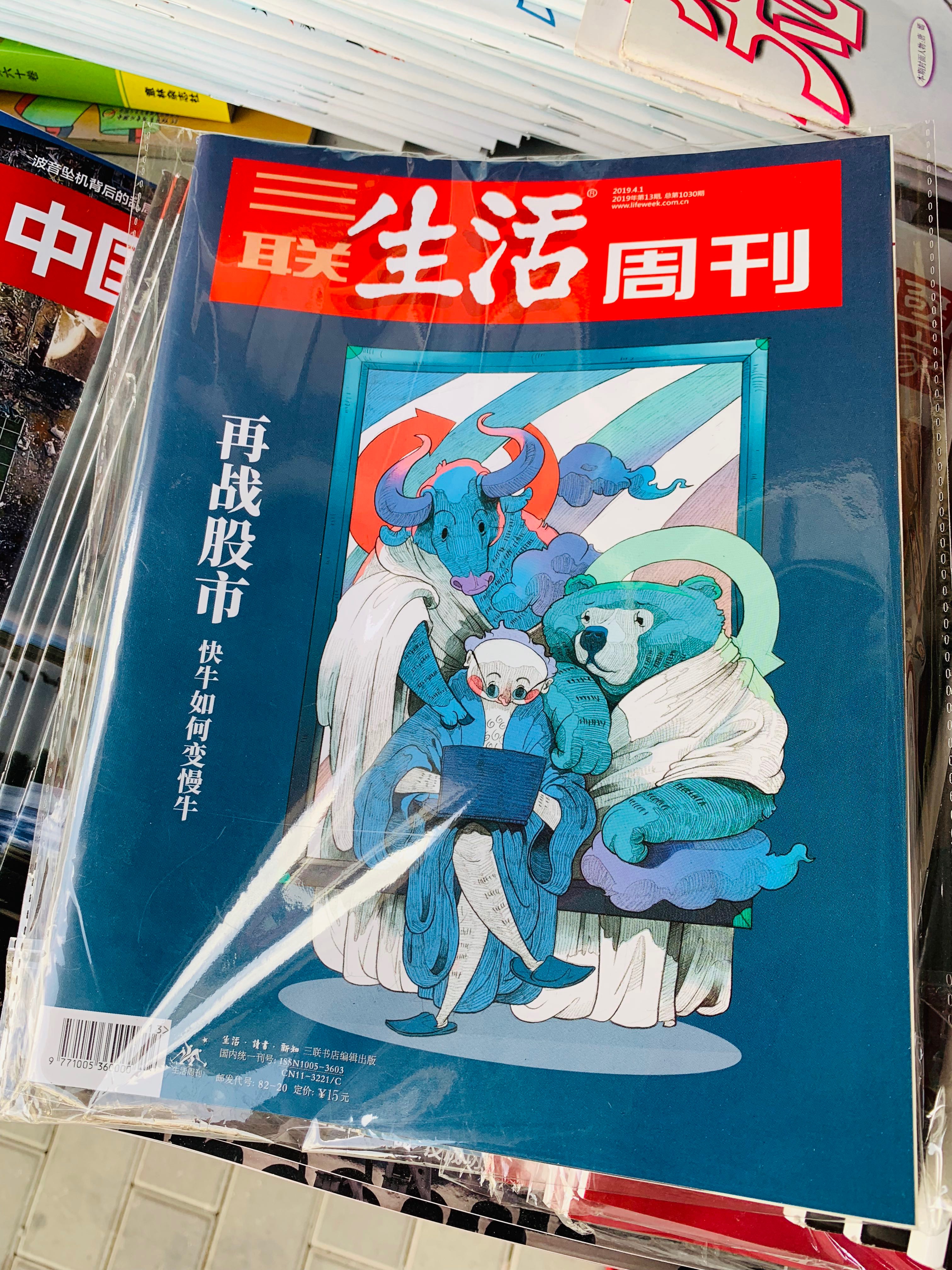 股市已经热到什么地步呢?今天看大盘快到3%的时候,我想起朋友给我发过三联这期的封面截图,所以想在报刊亭买一本,哪知连路过两家都说卖完,然后我找到第三家老板说还有一本,我松了口气,然后拍了下面这张照片准备发我朋友,结果斜刺里杀出一五六十岁老太,说我要这本,麻溜地微信一扫码就拿了走人了,剩下我一人在今天的妖风中飘零。