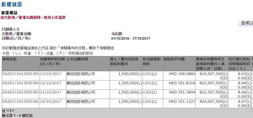 【Pony又开启“减持套现”模式】马化腾由10 月10日起连续4 日减持腾讯股份,每日分別减持150万股,共减持600万股股份,每股作价介乎348.09至351.13元。交易完成后,马化腾于该公司的持股量,由约8.26亿股减至约8.2亿股,占比则由本来的8.69%降至8.63%,这4日合共套现21.04亿元。